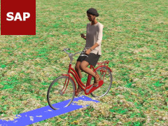 A very detailed woman coasting along on a bicycle. Important note: The 100 meter long blue placement path will only show up in Surveyor mode and helps you to place the item on your route correctly. Uses my MoveBot system for horizontal axis movement. Height adjustable. Has sound effects. Uses high quality non-parallax PBR textures. Poly count = 65227.