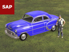 A detailed blue 1953 Chevrolet Club Coupe done as a static scenery item. Height adjustable. This asset may also be used by others as an 'attachment effect' mesh asset. Has LOD 0 to 3. Poly count at LOD0 = 27120