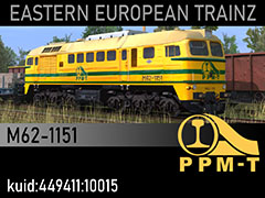 M62-1151 diesel locomotive owned by PPMT, former Belarus Railways engine, sold to Poland in 2008, sadly crashed in 2011. 3d kilanziom, photos kilanziom, textures marSt, script RBach. TRS12+. This model was tested in TS19 with fixed light script. Use view details window to control all options of the model including lights, doors and the nightview.