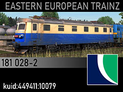 181 028-2 electric locomotive owned by Ciech Cargo company, former Transoda Ciech. 3d kilanziom, photos marSt, textures marSt, script RBach. TS12+, for any missing assets visit www.trainzart.pl - tested in TS19 with fixed light script. Use view details window to control all options of the model including lights, doors and pantographs.