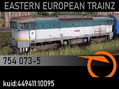754 073-5 diesel locomotive owned by Slovak Railways ZSSK, state and paintscheme of early 2010s. 3d kilanziom, photos kilanziom, textures marSt, script Rbach. This model was tested in TS19 with fixed light script. Use view details window to control all options of the model including lights, doors and the nightview.