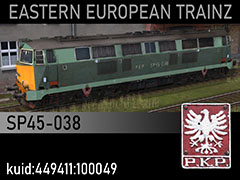 SP45-038 diesel locomotiv eowned by Polish State Railways (PKP), early 1990s paintscheme. 3D kilanziom, photos kilanziom, textures MarSt, script RBach. This model was tested in TS19 with fixed light script. Use view details window to control all options of the model including lights, doors and the nightview.