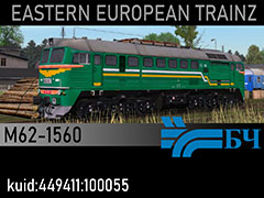 M62-1560 diesel locomotive of Belarus Railways BC, allocated to Minsk-Sort depot. 3d by kilanziom, photos by m0ke, textures by MarekSt, script by Rbach. TS12+ This model was tested in TS19 with fixed light script. Use view details window to control all options of the model including lights, doors and the nightview.