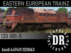 120 081-5 diesel locomotive of East German railways DR, manufactured in Lugansk in 1967, retired and scrapped in 1994. State and paintscheme of late 1980s. 3d kilanziom, photos marSt, textures marSt, script RBach. TRS12+. This model was tested in TS19 with fixed light script. Use view details window to control all options of the model including lights, doors and the nightview.
