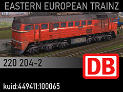 220 204-2 diesel locomotive of German Railways DB, mid 1990s state. 3d kilanziom, photos marSt, textures marSt, script RBach. This model was tested in TS19 with fixed light script. Use view details window to control all options of the model including lights, doors and the nightview.