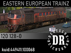 120 128-4 diesel locomotive of East German railways DR, manufactured in Lugansk in 1968, retired in 1992 and sold to Lithuanian Railways LG. State and paintscheme of late 1980s. 3d kilanziom, photos marSt, textures marSt, script RBach. TRS12+. This model was tested in TS19 with fixed light script. Use view details window to control all options of the model including lights, doors and the nightview.