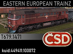 T679.1471 diesel locomotive of Kralupy nad Vltavou depot, mid 1970s state and paintscheme. 3d kilanziom, photos marSt, textures marSt, script RBach. This model was tested in TS19 with fixed light script. Use view details window to control all options of the model including lights, doors and the nightview.