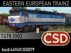 Prototypical T478.1002 diesel locomotive manufactured in 1966 by CKD Praha. 3d kilanziom, photos kilanziom, textures marSt, script RBach. This model was tested in TS19 with fixed light script. Use view details window to control all options of the model including lights, doors and the nightview.