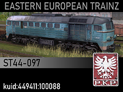 ST44-097 diesel locomotive, allocated to Warszawa Praga depot. This model presents mid 1980s state and paintscheme. The engine was retired in 1990. 3d kilanziom, photos marSt, textures marSt, script RBach. This model was tested in TS19 with fixed light script. Use view details window to control all options of the model including lights, doors and the nightview.