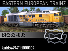 BR232-003 diesel locomotive owned by Pozbruk-Connect company, former DB 242 003-2, modernised by AdTranz between 1999 and 2001 and sold to private operators. 3D kilanziom, photos kilanziom, textures marekSt, script RBach. This model was tested in TS19 with fixed light script. Use view details window to control all options of the model including lights, doors and the nightview.