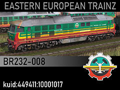 BR232-008 diesel locomotive of PTK Zabrze company, former 231 018-3 of DB. 3D kilanziom, photos SU46-024, textures marekSt, script RBach. This model was tested in TS19 with fixed light script. Use view details window to control all options of the model including lights, doors and the nightview.