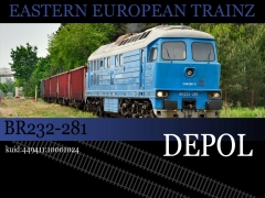 BR232-281 diesel locomotive owned by private company Depol, former bulgarian railways 07 class. 3d kilanziom, photos kanclerz, textures marek-S, script RBach. TRS12+. Download the enginesound and bogsound at http://makaron.krb.com.pl/?dzwieki,65 and the interior at http://trainzart.pl/downloads.php?cat_id=8&file_id=1364