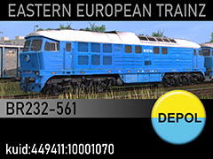 BR232-561 diesel locomotive owned by private company Depol, former bulgarian railways 07 class. 3D kilanziom, photos kanclerz, textures marekSt, script RBach. This model was tested in TS19 with fixed light script. Use view details window to control all options of the model including lights, doors and the nightview.