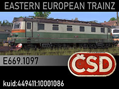 E669.1097 heavy freight electric locomotive, manufactured by Skoda works in 1962 for Czechoslovak State Railways CSD. Model reflects the paintscheme and lettering used since 1982. 3d kilanziom, photos marekSt, textures marekSt, script RBach.This model was tested in TS19 with fixed light script. Use view details window to control all options of the model including lights, doors and pantographs.