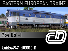 754 051-1 diesel locomotive of Czech National Railways (CD), state and paintscheme found between 2005 and 2025. 3d kilanziom, photos kilanziom, textures marSt, script Rbach. This model was tested in TS19 with fixed light script. Use view details window to control all options of the model including lights, doors and the nightview.
