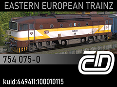 754 075-0 diesel locomotive of Czech National Railways CD, historic paintscheme found between 1994 and 1996. 3d kilanziom, photos kilanziom, textures marSt, script Rbach. This model was tested in TS19 with fixed light script. Use view details window to control all options of the model including lights, doors and the nightview.