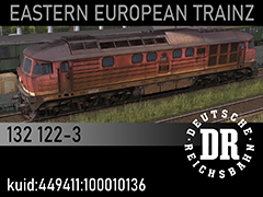 132 122-3 diesel locomotive owned by East German railways (DR), mid 1980s state and paintscheme. 3d by kilanziom, photos by Marcus, textures by MarekSt, script by Rbach. This model was tested in TS19 with fixed light script. Use view details window to control all options of the model including lights, doors and the nightview.