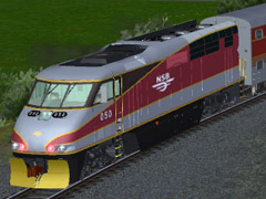Reskin, Fictional NSB of The Electro-Motive Diesel (EMD) F59PHI is a 3,200 horsepower(2.3 MW)B-B diesel-electric locomotive.The F59PHI utilizes an EMD 12-710E3, a 12 cylinder, 2 stroke, water cooled 'Vee' diesel engine (prime mover).It is the current main workhorse for Amtrak, and utilized by many metro commuters.Thanx to mikey186 for making the Engine sounds and the Horn.There currently is no cab mode for this locomotive, one will likely be released in the future by myself or someone else as I have made this project open source.If you are a creator and would like to make a new version of this locomotive you can download the source meshes at(Yukonzoom`s)website http://yukonzoom3dcreations.yolasite.com/ Thanks to Steven Alpaugh (Yukonzoom) for allowing me to convert and repackage his content under my kuid number.