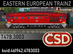 T478.3003 diesel locomotive, first out of 10 of the demonstrator series manufactured in 1970 for CSD by CKD Praha. Late 1980s state and paintscheme. 3d kilanziom, photos vojaa20, textures vojaa20, script RBach. This model was tested in TS19 with fixed light script. Use view details window to control all options of the model including lights, doors and the nightview.