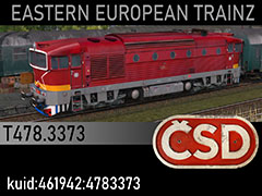 T478.3373 diesel locomotive from Nymburk depot, mid 1980s paintscheme and lettering. 3d kilanziom, photos kilanziom, textures vojaa20, script RBach. This model was tested in TS19 with fixed light script. Use view details window to control all options of the model including lights, doors and the nightview.