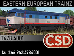 Prototypical diesel-hydraulic T478.4001 (ex. T478.2001) diesel locomotive manufactured by CKD. 3d kilanziom, photos vojaa20, textures vojaa20, script RBach. TRS2006+. This model was tested in TS19 with fixed light script. Use view details window to control all options of the model including lights, doors and the nightview.