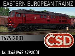Prototypical T679.2001 diesel locomotive owned by Czechoslovak State Railways CSD, one of 2 prototypes manufactured at Lugansk Works for CSD in 1973. 3d kilanziom, photos rumensoft textures vojaa20, script RBach. This model was tested in TS19 with fixed light script. Use view details window to control all options of the model including lights, doors and the nightview.