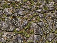 PBR environment ground texture. Ligt gray, mineral streaked, multi-facet rock with green moss between fissures.