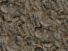 PBR environment ground texture. Gray-brown fractured rock face with loose brown soil.