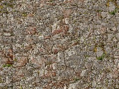 PBR environment ground texture. Light brown multi facet rock face with green vegetation.