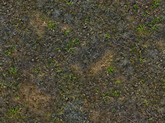 PBR environment ground texture. Dark/light brown soil and green weed patches