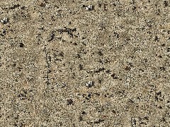 PBR environment ground texture. Numerous small, scattered, broken pieces of a demolished building on tan soil.