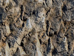 PBR environment ground texture. Rough rock cliff texture in brown hue with horizontal/vertical cracks across surface.
