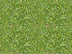 PBR environment ground texture. Green Ivy grass and yellow daisies.