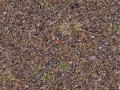 PBR enviorment texture. Brown soil, pine cones, grass/weeds, sticks and stones.