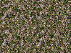 PBR environment ground texture. Green weed patches, fallen leaves. and white soil.