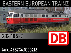 232 105-7 diesel locomotive of German Railways DB, leased for polish private operator EWR between 2008 and 2012. 3D kilanziom, photos kilanziom, textures hanys, script RBach. This model was tested in TS19 with fixed light script. Use view details window to control all options of the model including lights, doors and the nightview.
