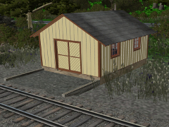 (v2-changed trainz-build so it won't be 'out of date') A Pennsylvania Railroad standard lineside Tool House, based on PRR Drawing 59327 (dated 1911). Developed using Blender 2.68a. Add track of your choice in front of the doors.