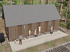 Hangman Creek Lumber Company crew bathhouse. Use my concrete slab splines (1.5 and 3 meter) to make the porch area, and my plank walkway v1 1.49m for the wood steps