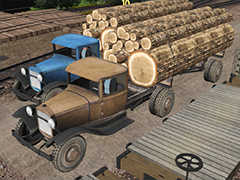 1900s Logging truck with stinger trailer. Based on the GAZ AA truck frame and body. Original truck model by rajibkc. Bedbox, fifth-wheel hitch and frame, stinger trailer with gooseneck, and the logs set modeled by me