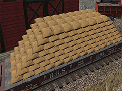 Bagged Ore load. 231 burlap bags of generic ore, tailings or any other rock like product. Use on U.S. narrow gauge 30ft flatcars