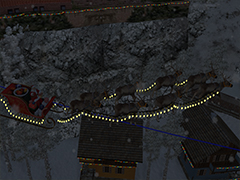 Santa and his reindeer pulling the Christmas Sleigh, with nightmode lights. The night Christmas lights oversized to be visible from a distance, at night. Place 20 to 50 meters above your terrain.