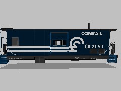 A Bay Window Caboose, with interior views, Conrail. Updated with new coupler & hose, better trucks, and shadow. Has night mode. May be reskinned as long as license is observed.