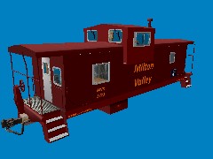 (Milton Valley Railroad Wide Vision Caboose, with interior views. Updated July, 2018, to fix step texture mapping. May be reskinned as long as license is observed.