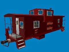 (Milton Valley Railroad Wide Vision Caboose, with interior views. Updated July, 2018, to fix step texture mapping. May be reskinned as long as license is observed.