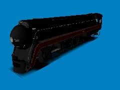 MVR (Milton Valley Railroad) Class J #450 4-8-4 Steam passenger locomotive. This is a re-skin and update of the original 'N&W Class J 600' steam locomotive by Ben Neal. The original author retains all copyrights to the meshes and textures used in this item. My thanks to Ben for his truly great locomotives! To re-skin just read the included license and readme.txt file. N&W 600 was the first of a series of fourteen J class 4-8-4s built by Norfolk & Western's Roanoke shops. Number 600 rolled out of the shops in October 1941. The 1941 Js were designed to replace various classes of smaller steam (K1s and K2s, primarily) in mainline passenger service. Due to the terrain to be traversed by the class, the N&W opted to equip the class with stubby 70 inch drivers. A huge, high pressure boiler was paired with this chassis, providing high tractive effort for a 4-8-4. The large size of the boiler made it theoretically possible for the class to attain and maintain high speeds, although conventional wisdom suggested the speed would be limited by the low drivers. Despite conventional wisdom, the drivers were actually extremely well counterbalanced, making speeds of 100+ attainable with a typical train.