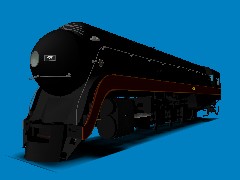 MVR (Milton Valley Railroad) Class J #453 4-8-4 Steam passenger locomotive. This is a re-skin and update of the original 'N&W Class J 600' steam locomotive by Ben Neal. The original author retains all copyrights to the meshes and textures used in this item. My thanks to Ben for his truly great locomotives! To re-skin just read the included license and readme.txt file. N&W 600 was the first of a series of fourteen J class 4-8-4s built by Norfolk & Western's Roanoke shops. Number 600 rolled out of the shops in October 1941. The 1941 Js were designed to replace various classes of smaller steam (K1s and K2s, primarily) in mainline passenger service. Due to the terrain to be traversed by the class, the N&W opted to equip the class with stubby 70 inch drivers. A huge, high pressure boiler was paired with this chassis, providing high tractive effort for a 4-8-4. The large size of the boiler made it theoretically possible for the class to attain and maintain high speeds, although conventional wisdom suggested the speed would be limited by the low drivers. Despite conventional wisdom, the drivers were actually extremely well counterbalanced, making speeds of 100+ attainable with a typical train.