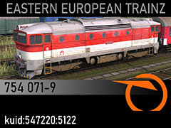 Тип: traincar754 071-9 diesel locomotive owned by Slovak Railways ZSSK. 3D kilanziom, photos kilanziom, textures pmt, script Rbach. This model was tested in TS19 with fixed light script. Use view details window to control all options of the model including lights, doors and the nightview.