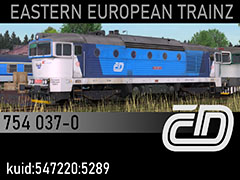 754 037-0 diesel locomotive of Czech National Railways CD, leased in 2014 to PKP Inter City. 3d kilanziom, photos kilanziom, textures PMT, script Rbach. This model was tested in TS19 with fixed light script. Use view details window to control all options of the model including lights, doors and the nightview.