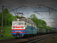 Електровоз двосистемний ВЛ82М-090. Рік побудови: 1979. Приписаний до локомотивного депо Куп'янськ (ТЧ-15) Південної залізниці УЗ. Ідентифікаційні номери секцій 12800090, 12800900. Вигляд локомотива відповідає стану на грудень 2011р. На ЗЕРЗ обладнаний ЕПГ та опаленням пасажирського складу