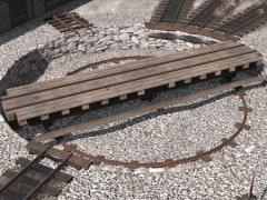 30' long 2ft-gauge iron turntable. This version has no side sheathing, with an attached dighole.
